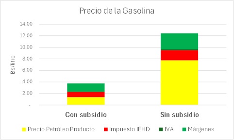 Primero ¿qué nos dice el mercado? Hay una empresa boliviana llamada Empacar que vende diésel oíl sin subsidio a (+/-) Bs 14 x litro.