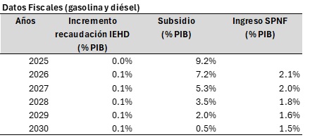 Fiscales, porque la eliminación del subsidio tiene impacto sobre el déficit en las finanzas del estado. Entonces, cuán altos serán los precios de la gasolina y diésel depende, también, de la meta sobre dicho déficit que tenga el gobierno.