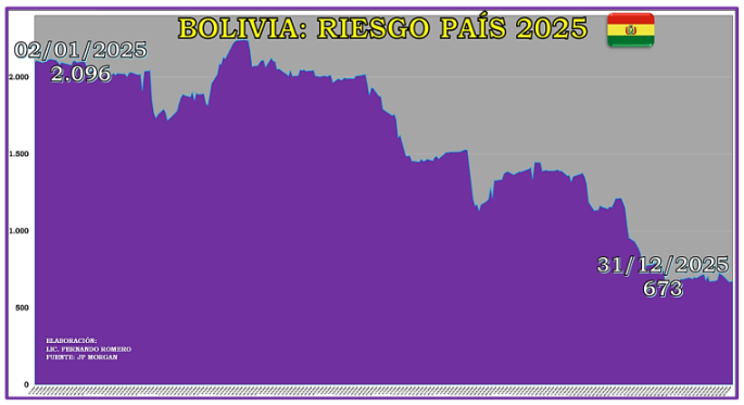 De hecho, de inicios de la gestión 2025 hasta al 31/12/2025 su riesgo país cayó